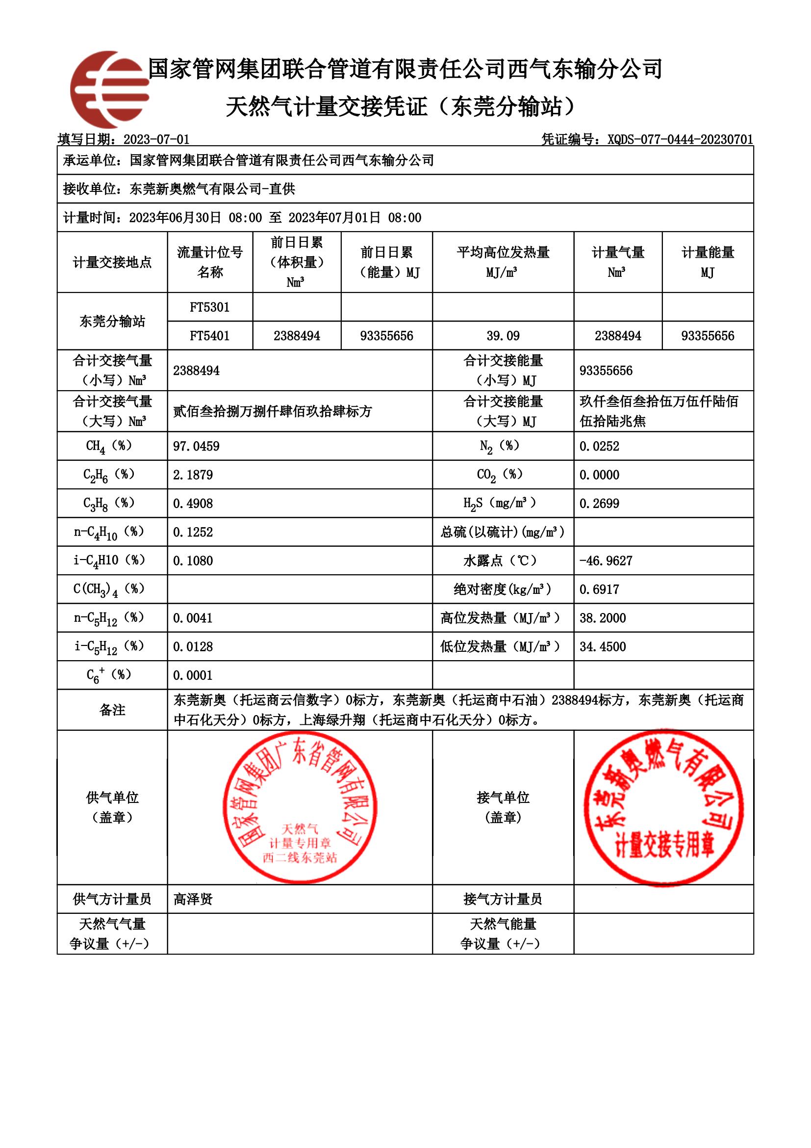 東莞新奧燃氣2023年7月份供氣質量檢查報告公示
