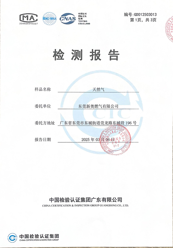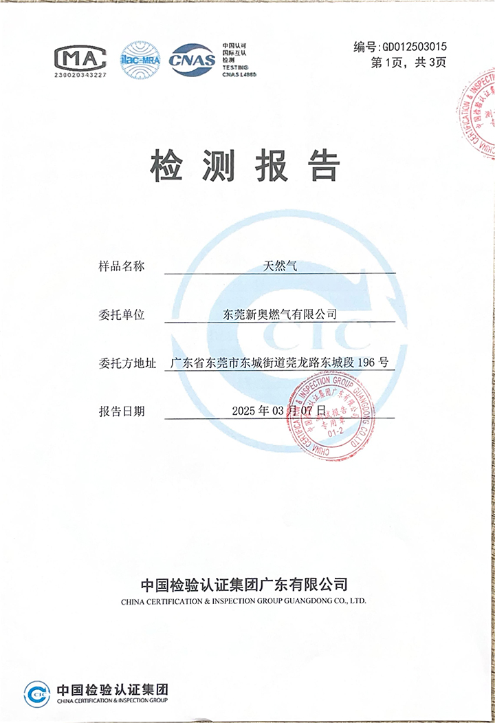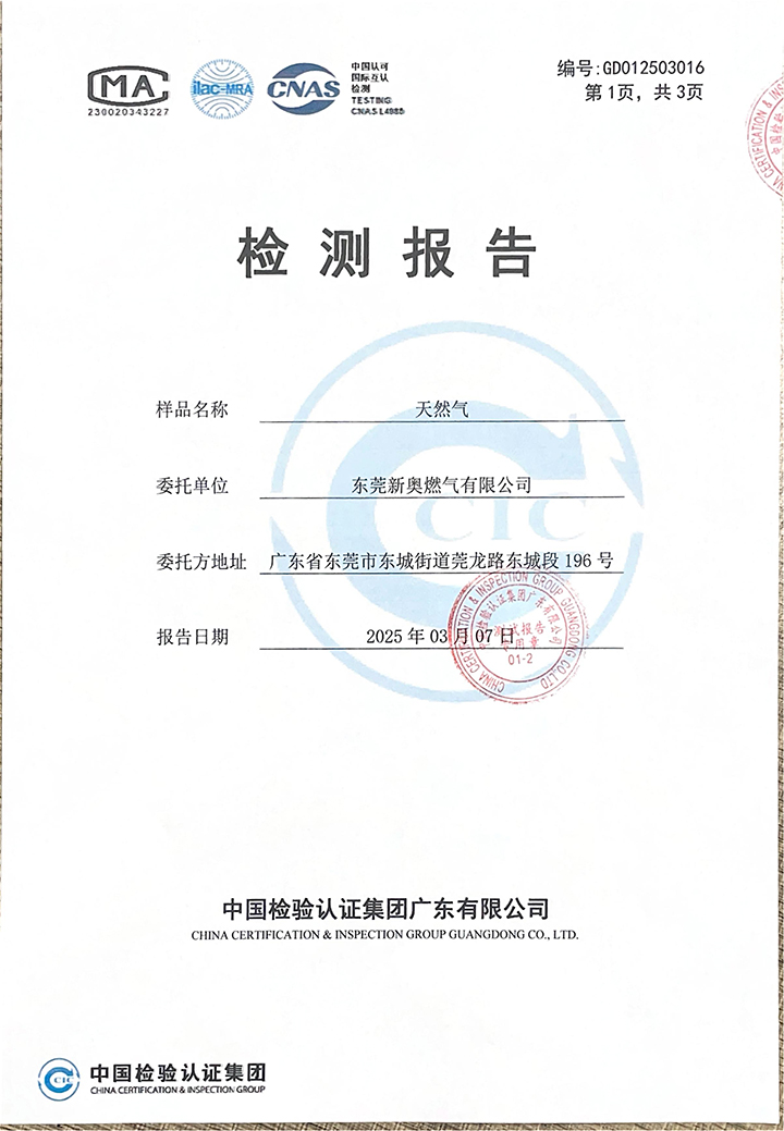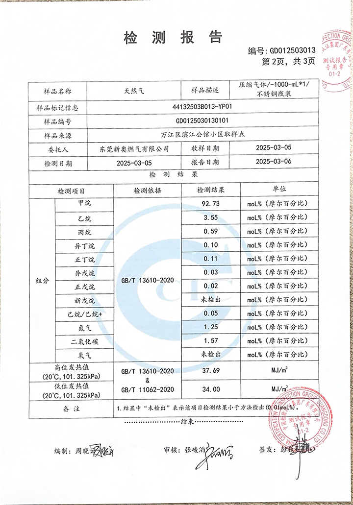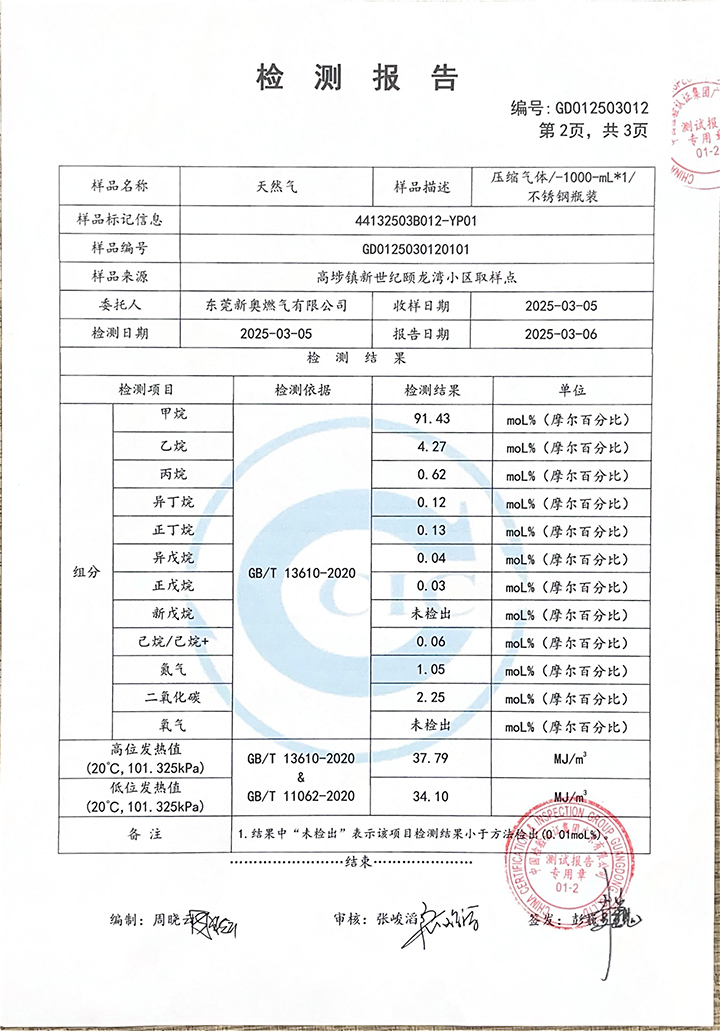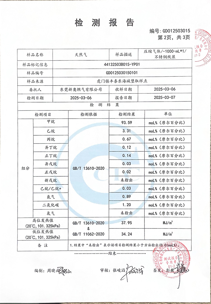東莞新奧2025年3月天然氣氣質報告公示
